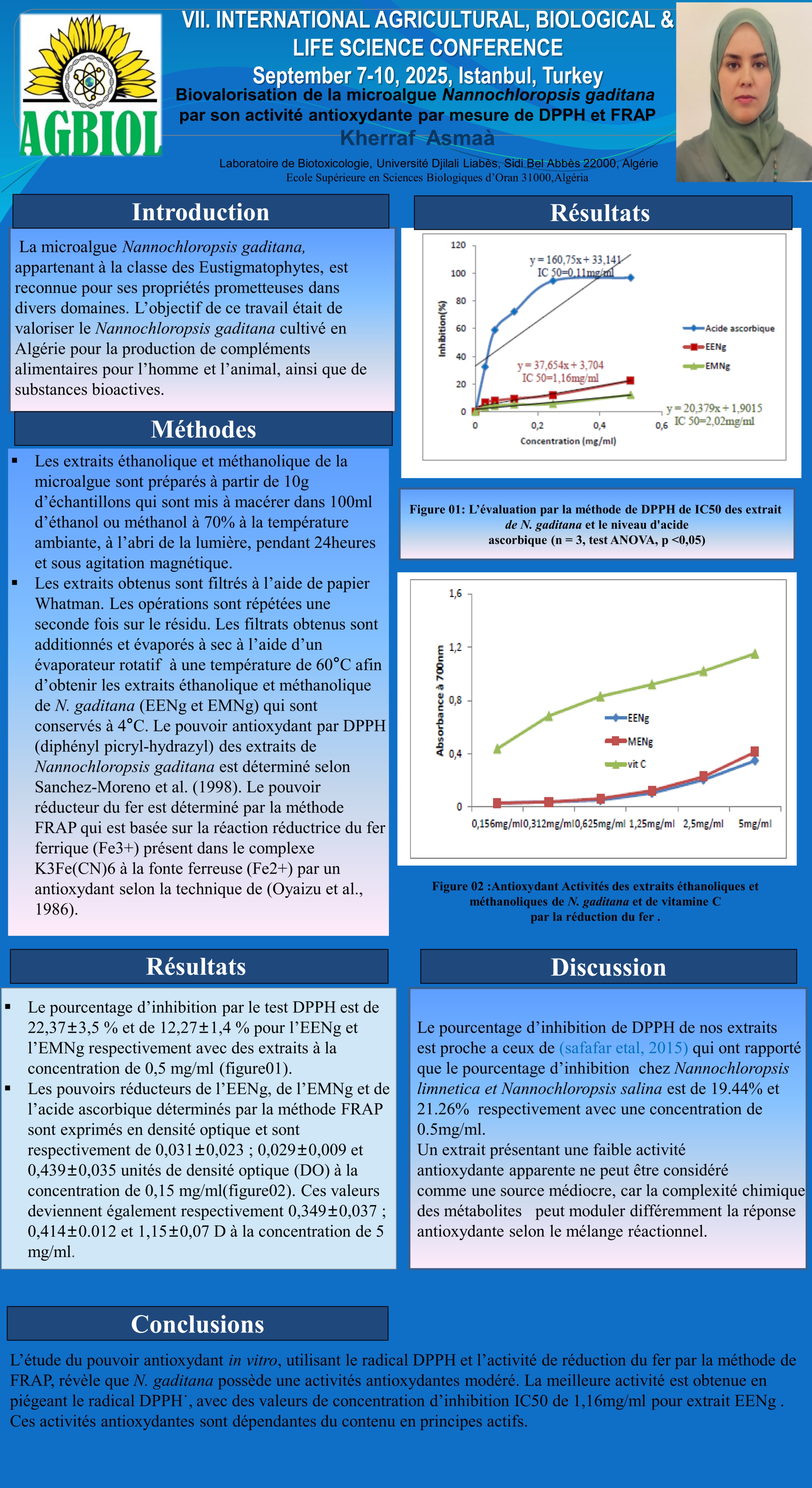 Biovalorization of the microalgae Nannochloropsis gaditana through its antioxidant activity by measuring DPPH and FRAP - Asma Kherraf