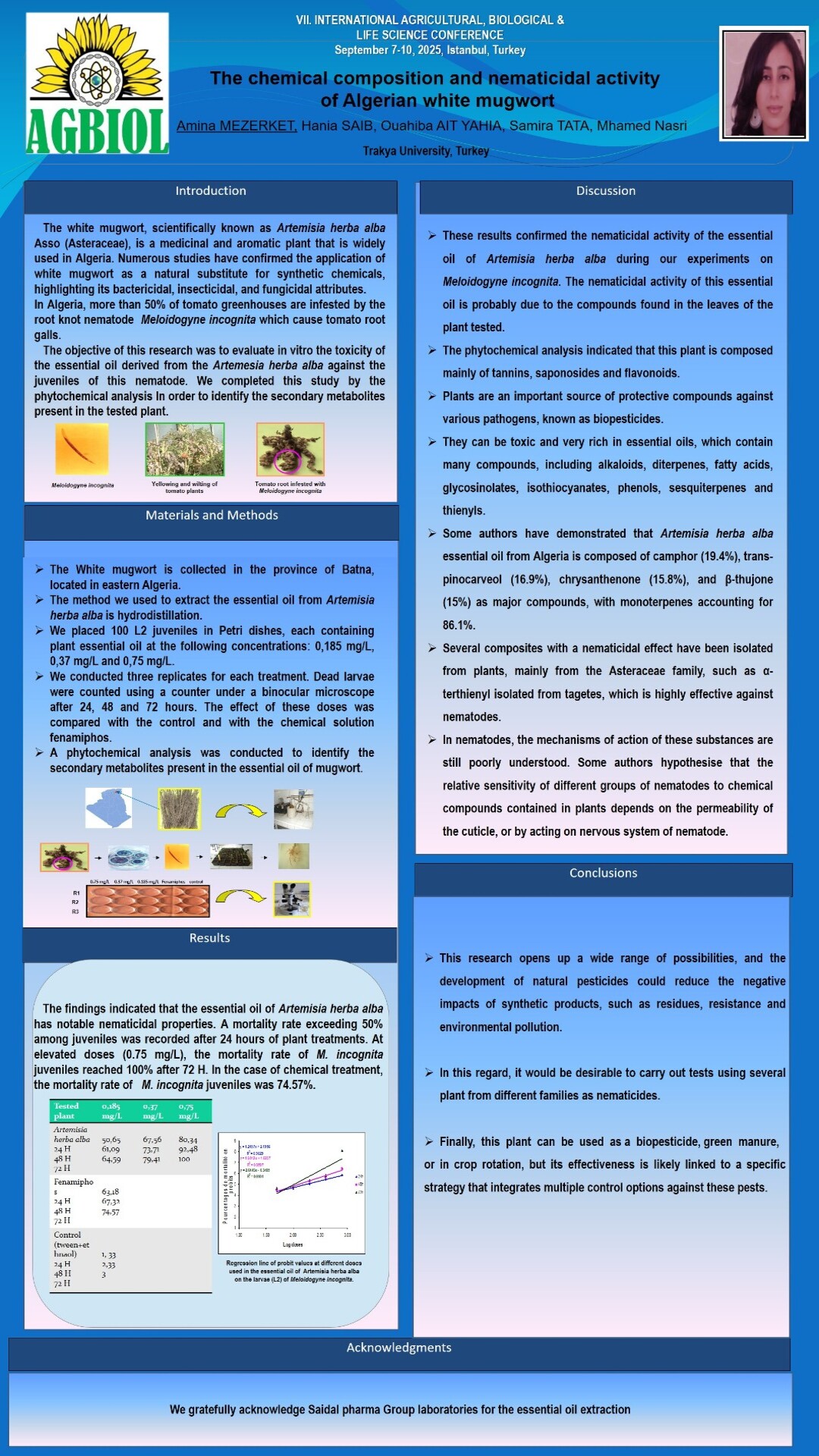 The chemical composition and nematicidal activity of Algerian white mugwort - Mezerket Amina, Saıb Henia, Aıt Yahıa Ouahiba, Tata Samira, Nasrı Mhamed