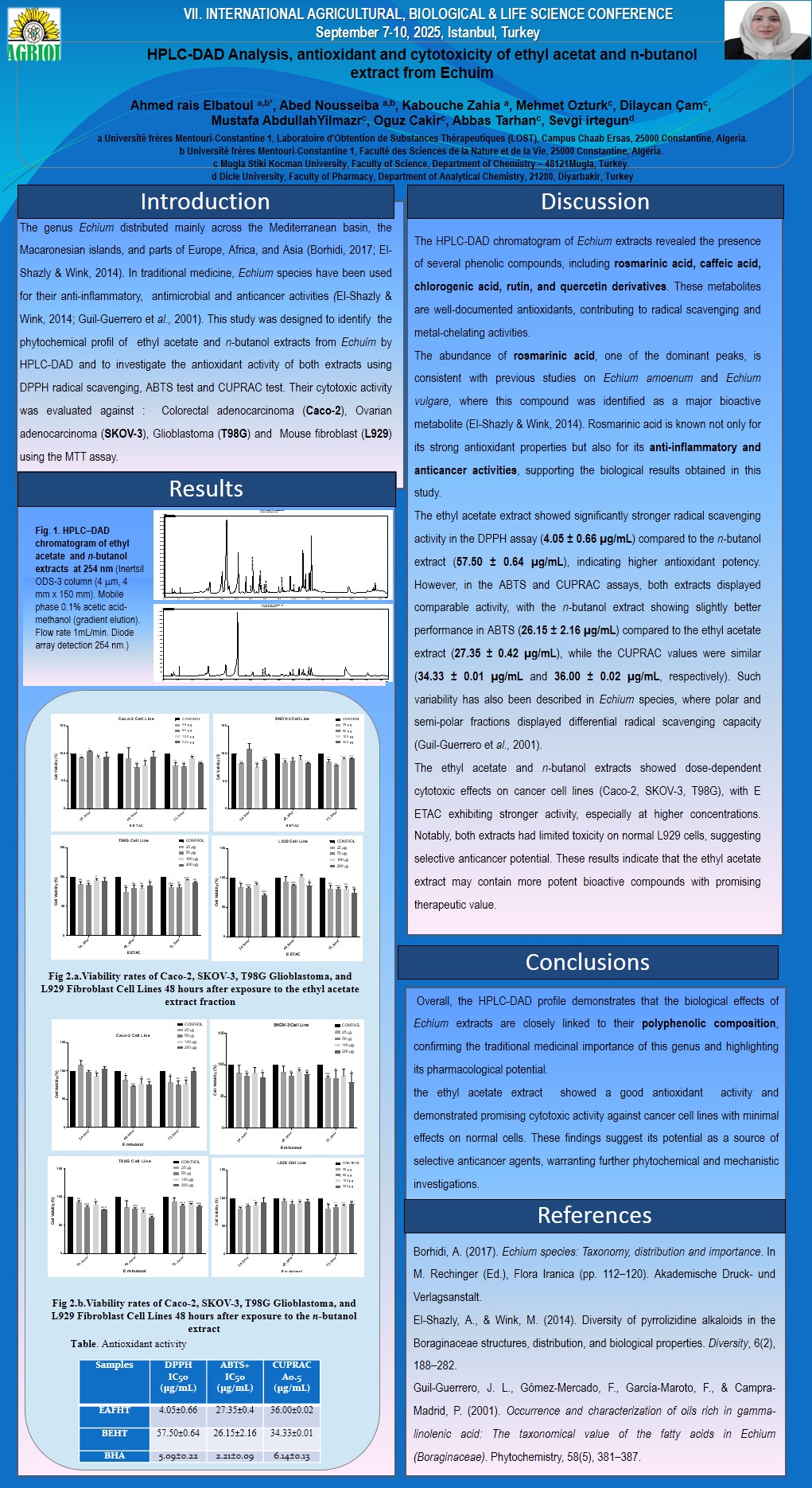 HPLC-DAD Analysis, antioxidant and cytotoxicity activities of ethyl acetate and n-butanol extracts from Echium - Elelbatoul Ahmed Rais, Nousseiba Abed, Zahia Kabouche, Mehmet Öztürk, Dilaycan Çam, Sevgi Irtegün, Salha Bouzid, Naima Boutaghane