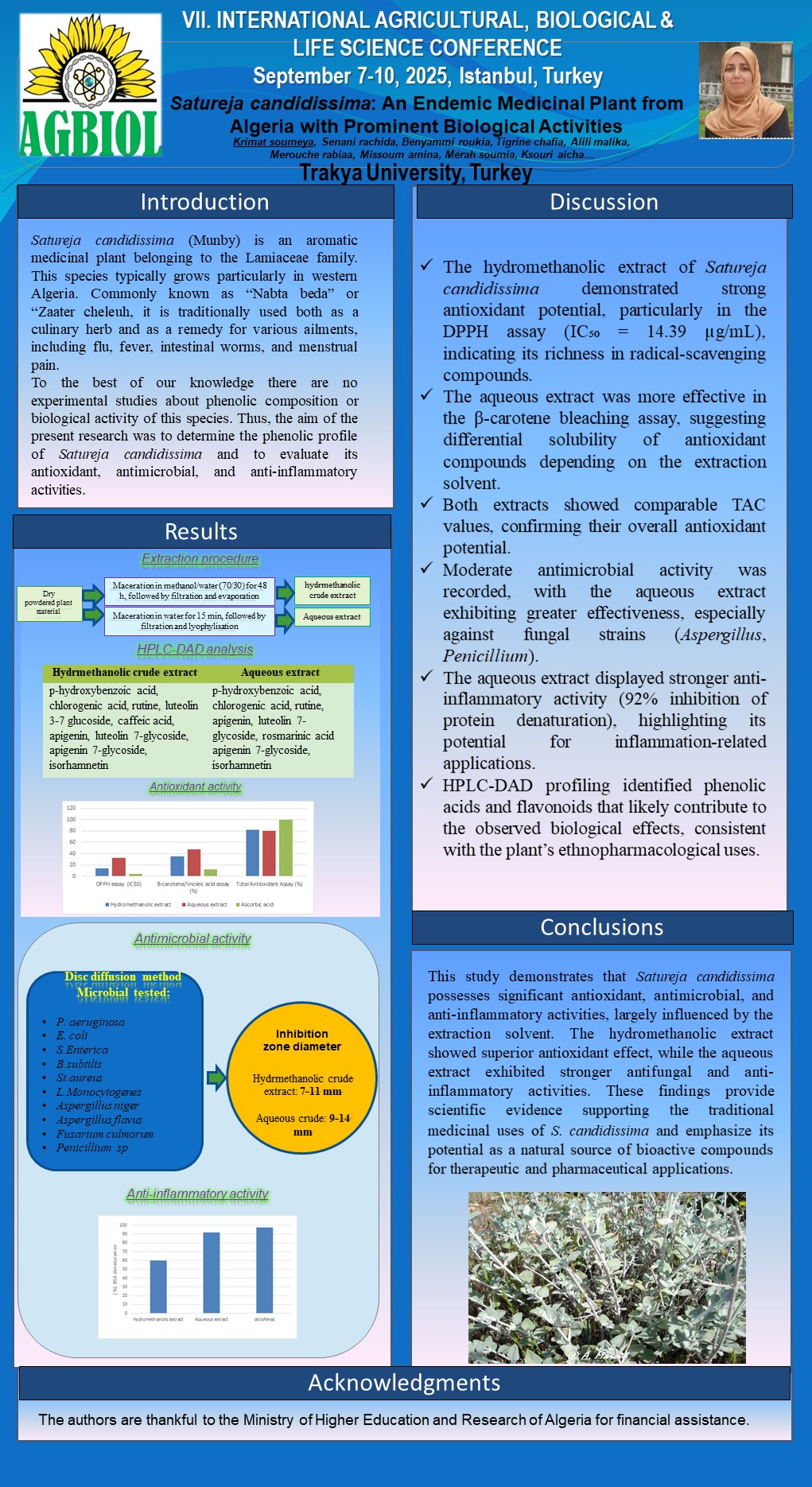 Satureja candidissima: An Endemic Medicinal Plant from Algeria with Prominent Biological Activities - Soumeya Krimat, Rachida Senani, Benyammi Roukia, Tigrine Chafia, Malika Alili, Merrouche Rabıaa, Amina Missoum, Soumeya Merah, Aicha Ksouri