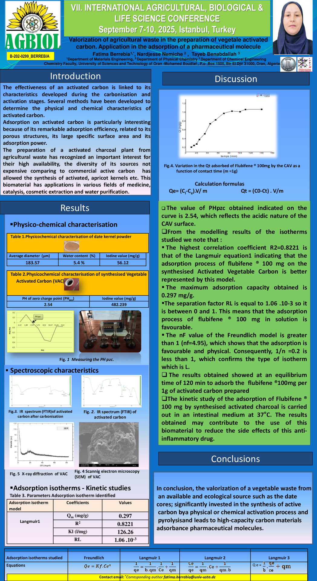 Valorization of agricultural waste in the preparation of vegetale activated carbon. Application in the adsorption of a pharmaceutical molecule - Fatima Berrebıa, Nemiche Nardjesse, Tayeb Benabdallah