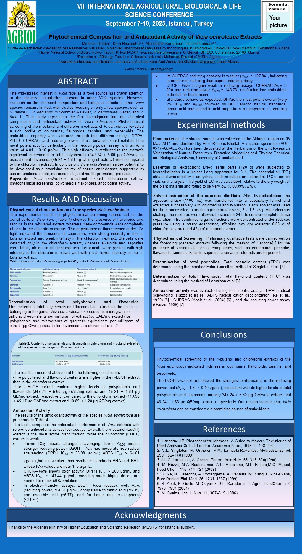 Phytochemical Composition and Antioxidant Activity of Vicia ochroleuca Extracts - Ratiba Mekkiou, Sara Boussaha, Abdelldjalil Kerkabou, Rebbas Khellaf
