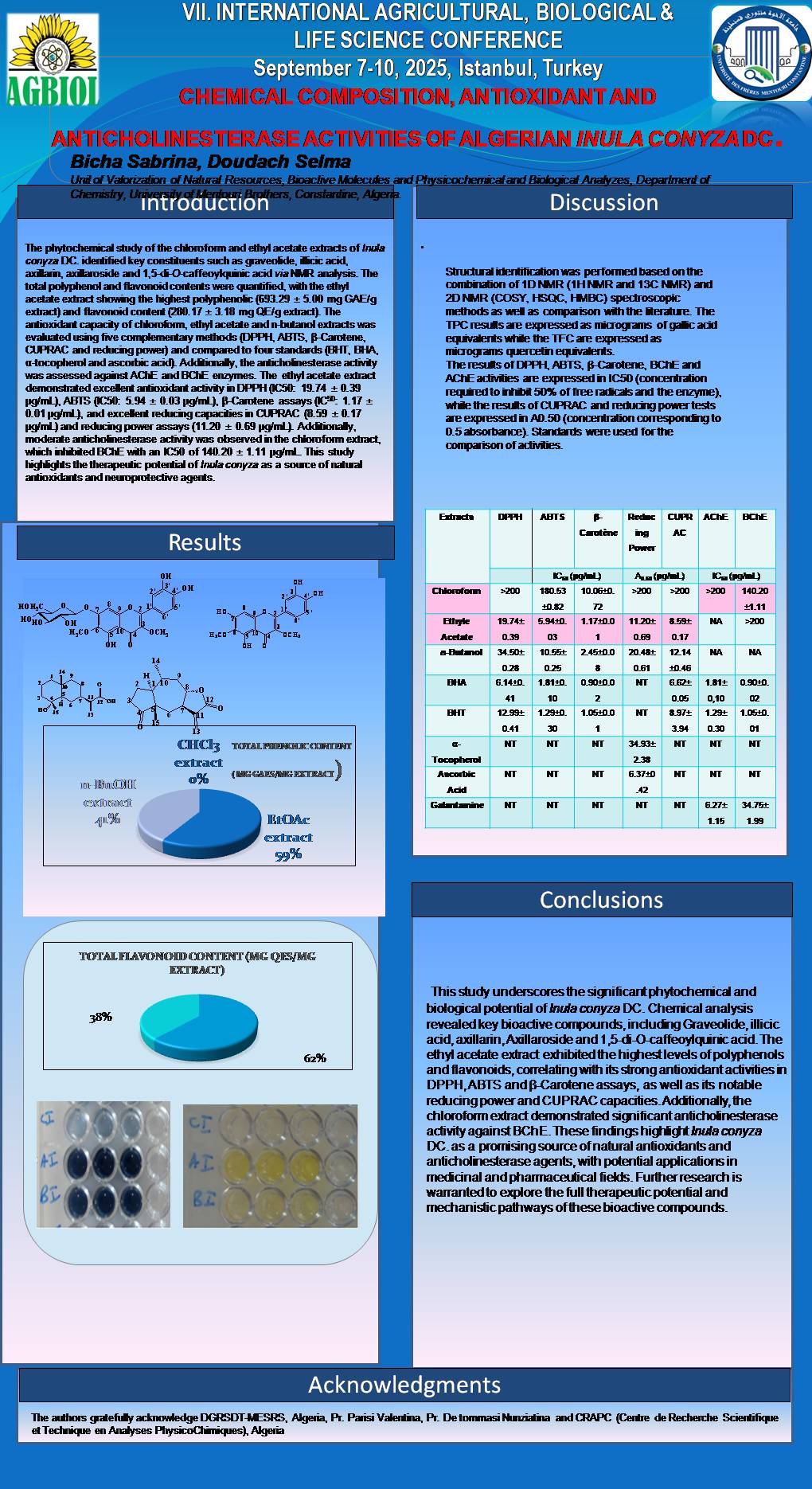 Chemical composition, antioxidant and anticholinesterase activities of Algerian Inula conyza DC - Bicha Sabrina, Selma Doudach
