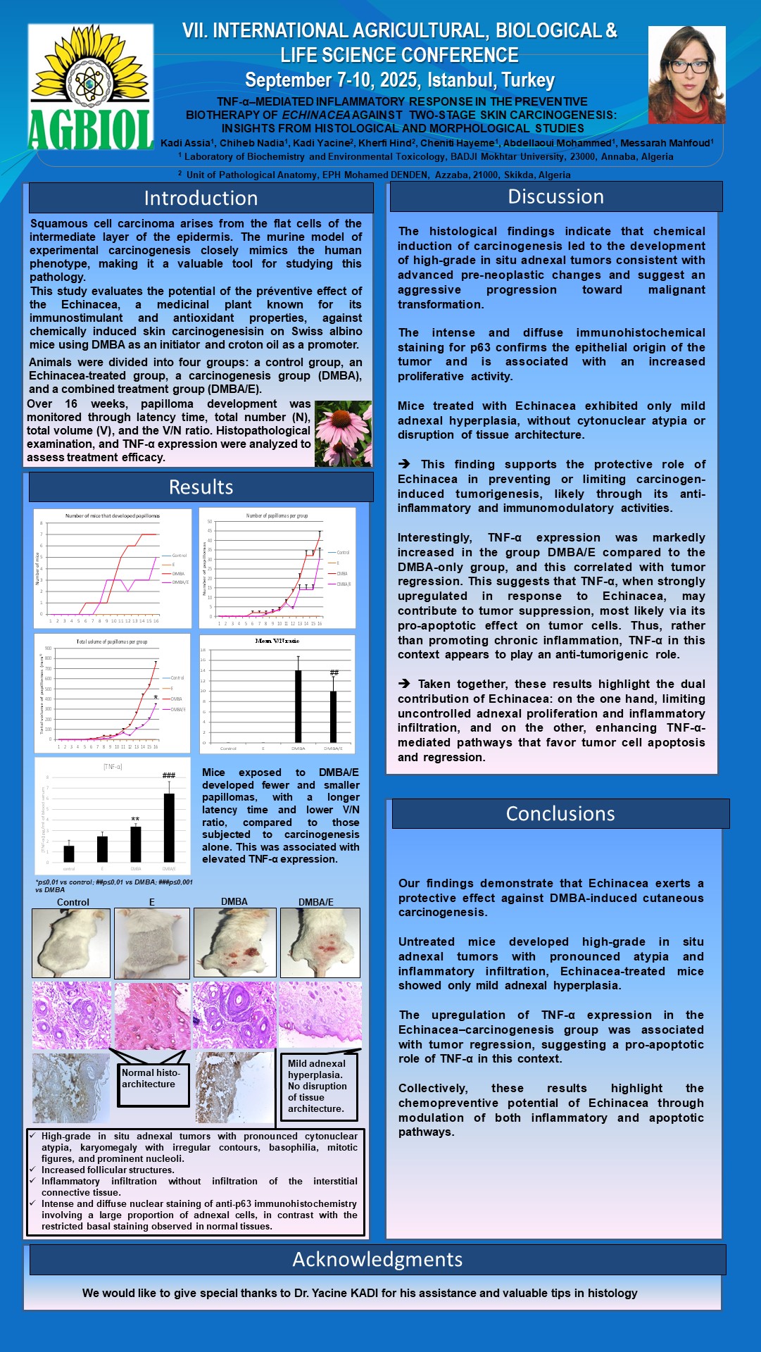 TNF-α–mediated inflammatory response in the preventive biotherapy of echinacea against two-stage skin carcinogenesis: insights from histological and morphological studies - Kadi Assia, Chiheb Nadia, Kadi Yacine, Kherfi Hind, Cheniti Hayeme, Abdellaoui Mohammed, Messarah Mahfoud