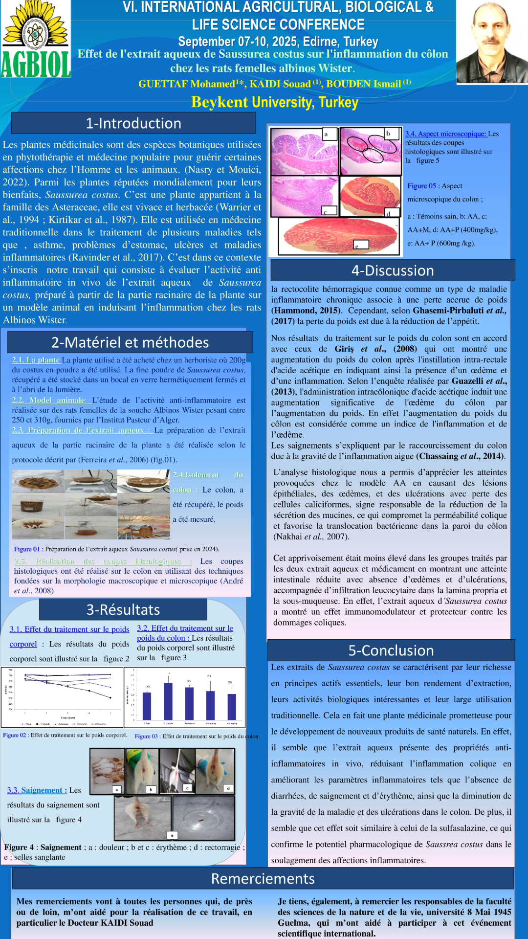 Effect of aqueous extract of Saussureacostuson colon inflammation in female Albino Wister rats. - Guettaf Mohamed