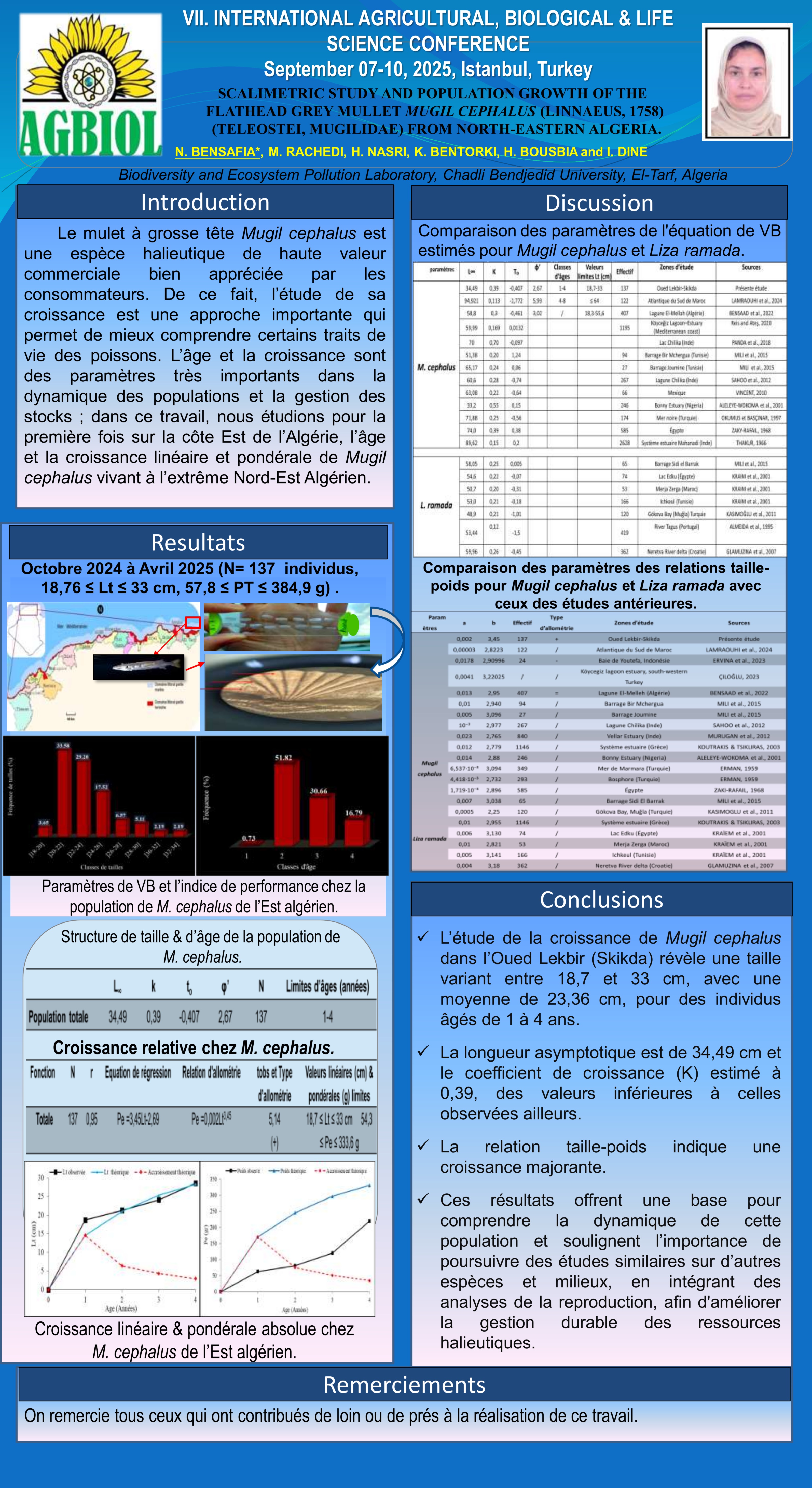 Scalimetric study and population growth of the flathead grey mullet Mugil cephalus (Linnaeus, 758) (Teleostei, Mugilidae) from north-eastern Algeria - Bensafia Nabila, Rachedi Mounira, Nasri Hichem, Kheireddine Bentorki Kheireddine, Bousbia Hocine, Dine Ibtissem