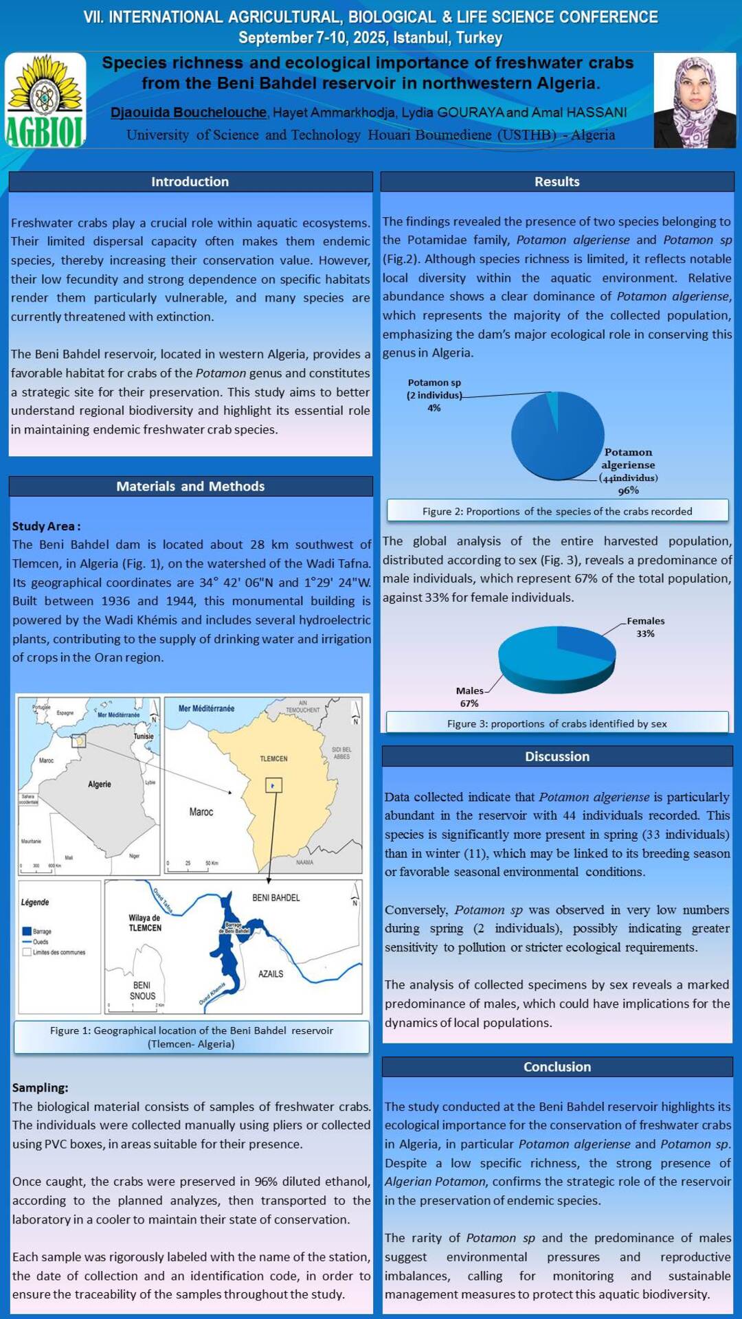 Species richness and ecological importance of freshwater crabs from the Beni Bahdel reservoir in northwestern Algeria - Djaouida Bouchelouche, Hayet Ammarkhodja, Lydia Gouraya, Amal Hassanı