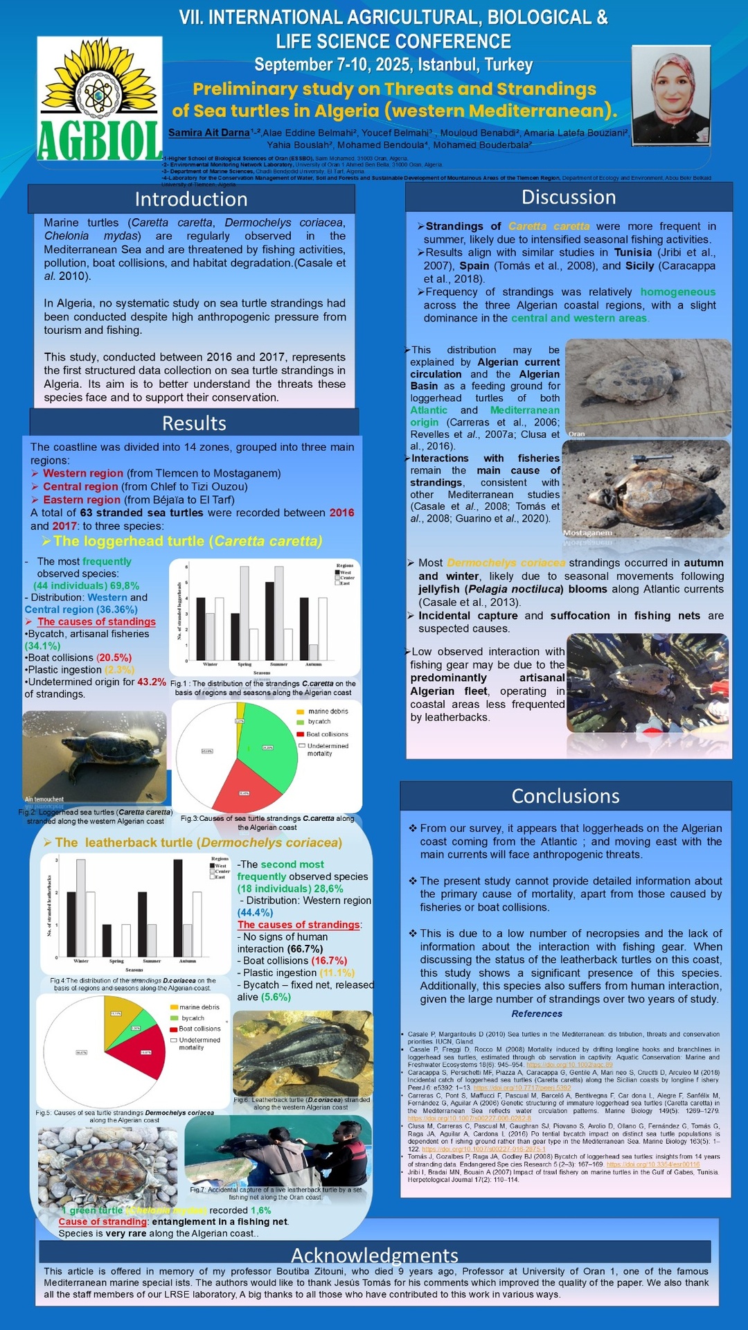 Preliminary study on Threats and Strandings of Sea turtles in Algeria (western Mediterranean). - Samira Aıt Darna, Alae Eddine Belmahı, Youcef Belmahı, Mouloud Benabdı, Amaria Latefa Bouziani, Yahia Bouslah, Mohamed Bendoula, Mohammed Bouderbala Bouderbala