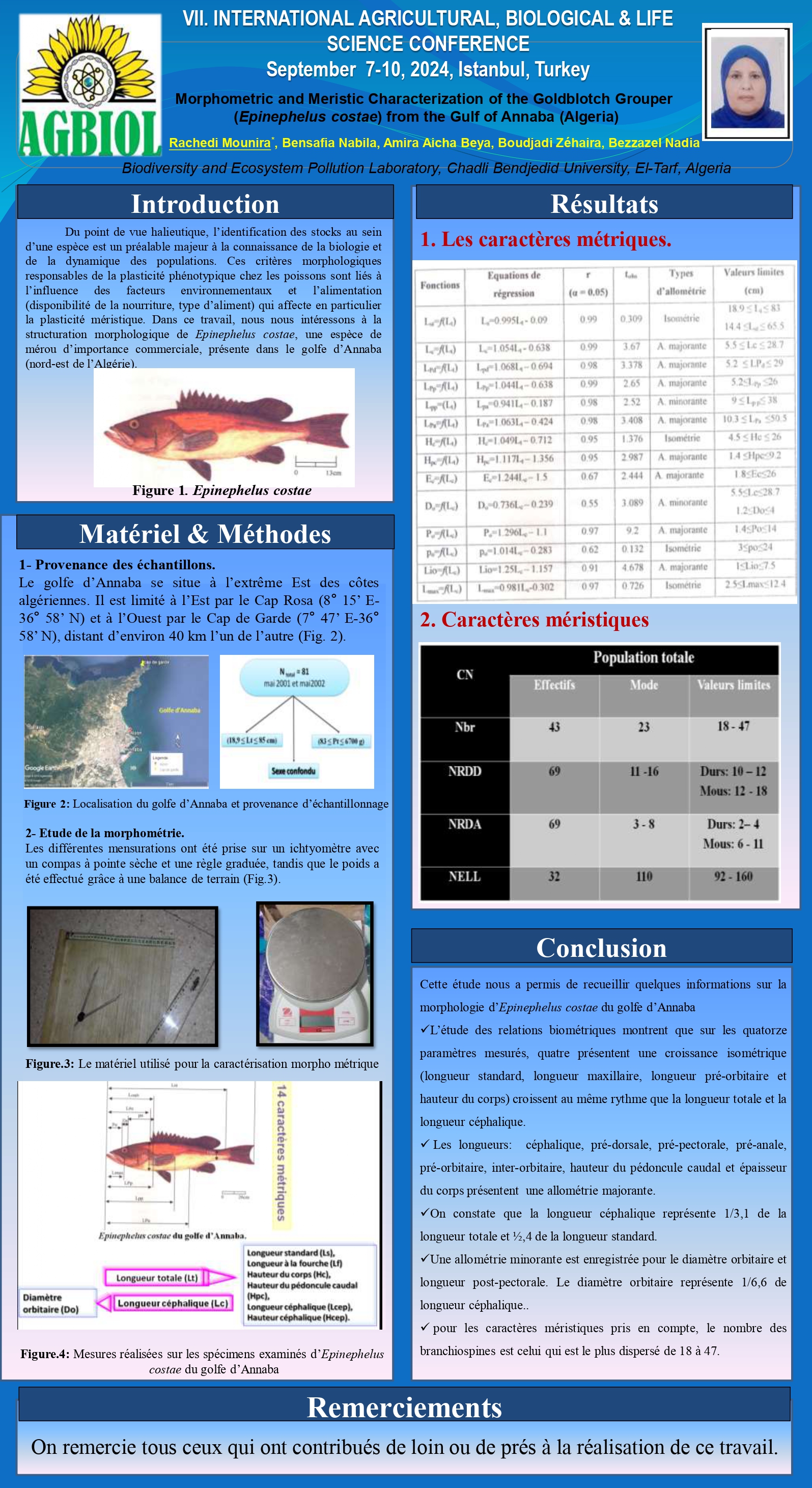 Morphometric and Meristic Characterization of the Goldblotch Grouper (Epinephelus costae) from the Gulf of Annaba (Algeria) - Rachedı Mounıra, Bensafia Nabila, Amira Aicha Beya , Boudjadı Zehaira , Bezzazel Nadia