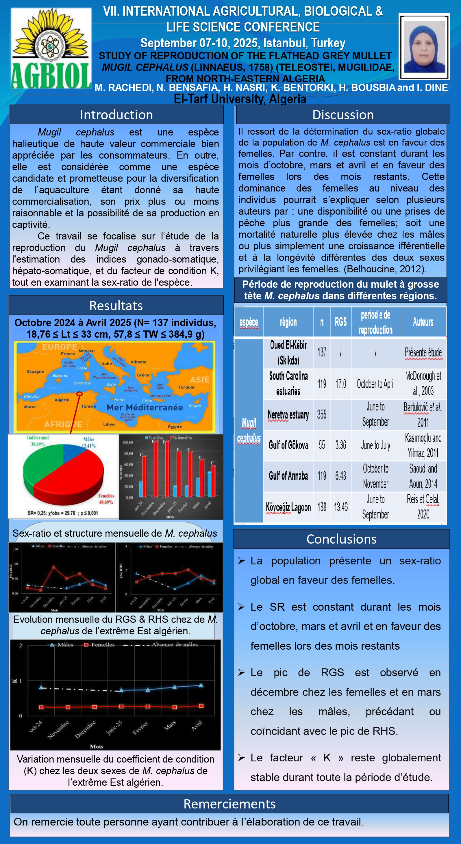 Study of reproduction of the flathead grey mullet Mugil cephalus (Linnaeus, 1758) (Teleostei, Mugilidae) from north-eastern Algeria - Rachedı Mounıra, Bensafia Nabila , Nasri Hichem , Kheireddine Bentorki Kheireddine , Bousbia Hocine , Dine Ibtissem