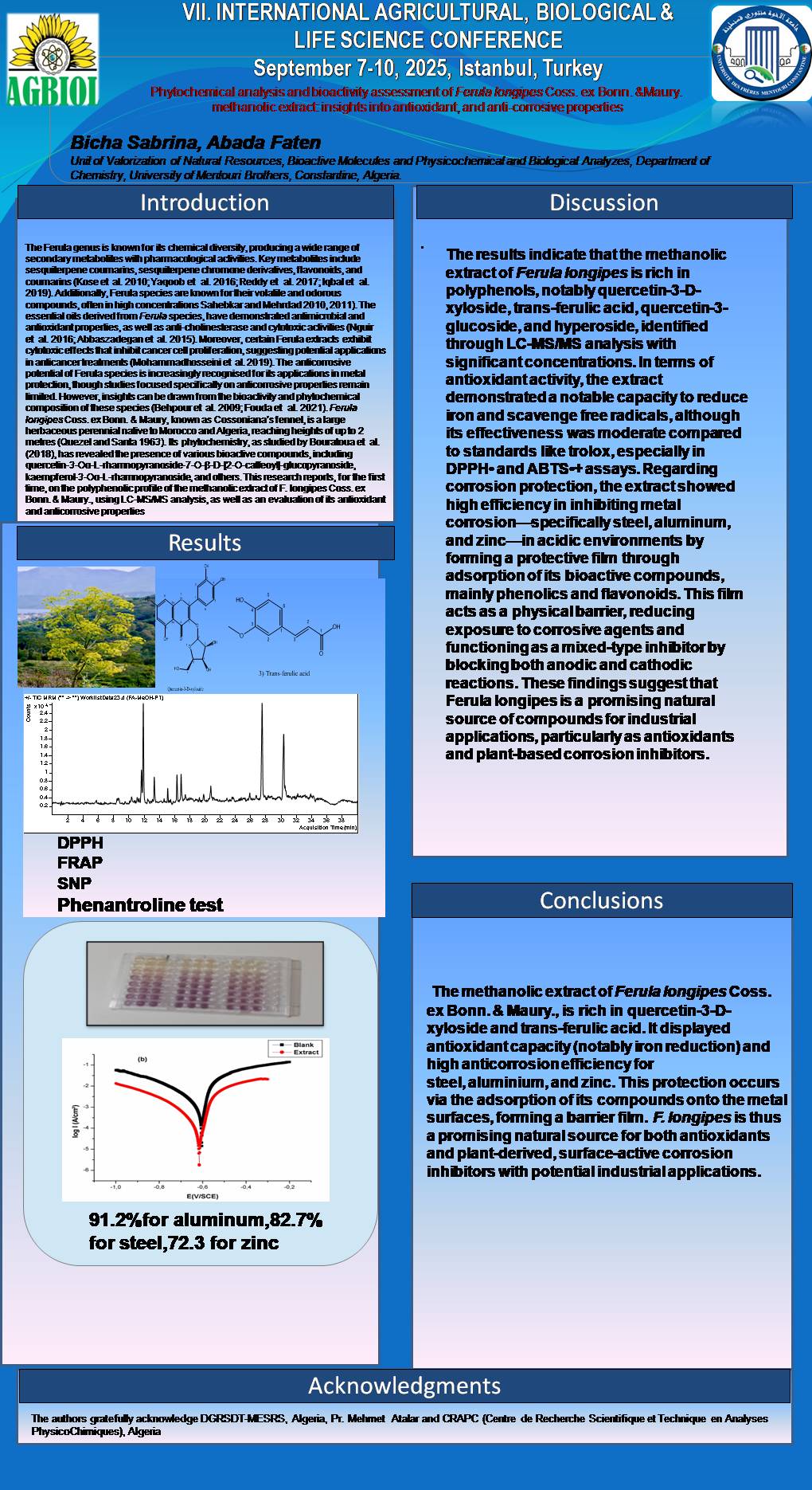 Phytochemical analysis and bioactivity assessment of Ferula longipes Coss. ex Bonn. & Maury. methanolic extract: Insights into antioxidant, and anti-corrosive properties - Bicha Sabrina