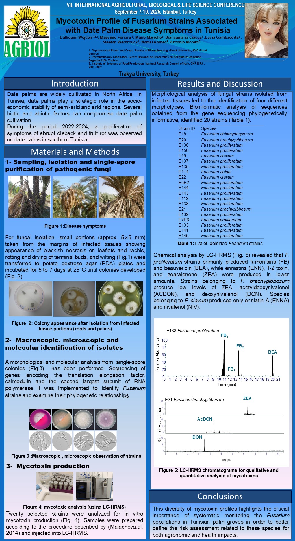 Mycotoxin Profiling of Fusarium Strains Associated with Date Palm Disease Symptoms in Tunisia - Dalhoumi Wejden, Massimo Ferrara, Mario Masiello, Lucia Gambacorta, Steefan Werbrouck, Namsi Ahmed, Bıancamarıa Cıasca, Antonio Moretti