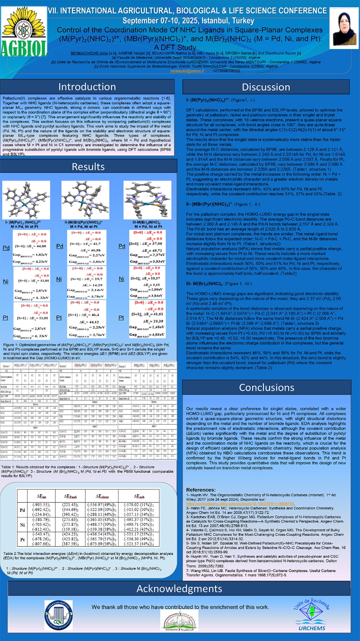 Control of the Coordination Mode of NHC Ligands in Square-Planar Complexes (M(Pyr)₂(NHC)₂)²⁺, (MBr(Pyr)(NHC)₂)⁺, and M(Br)₂(NHC)₂ (M = Pd, Ni, and Pt): A DFT Study. - Benmachıche Akila, Aımen Nadjet, Bouchakrı Naïma, Mılı Assia, Drıdeh Samia, Zouchoune Bachir